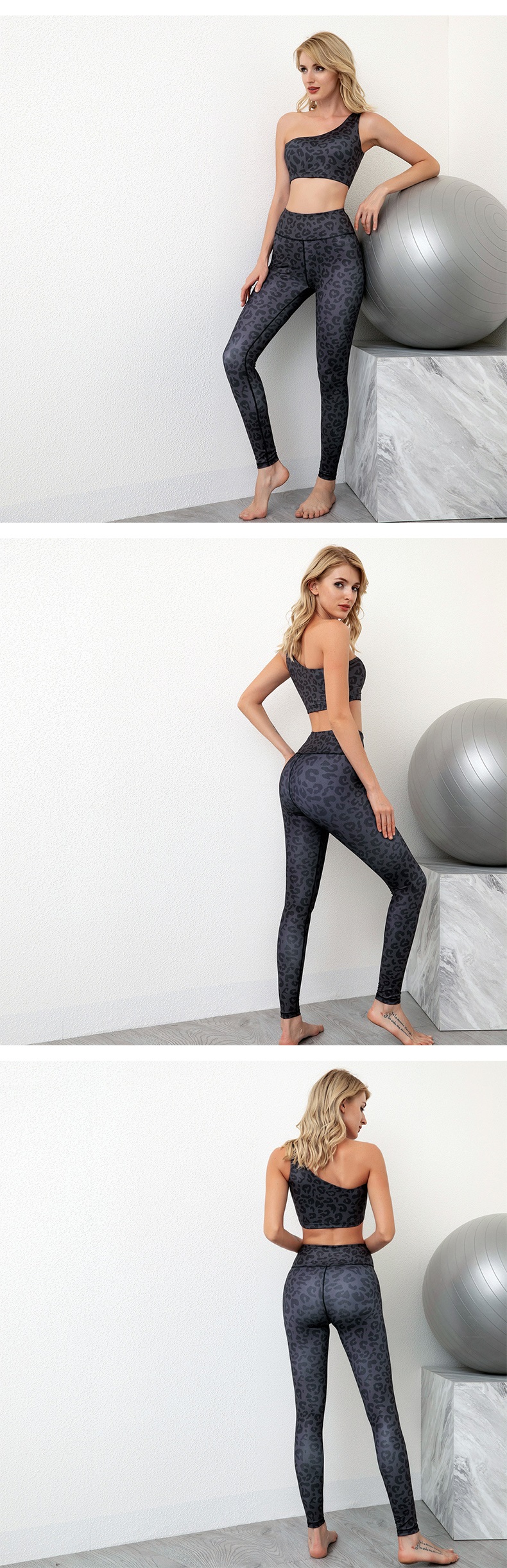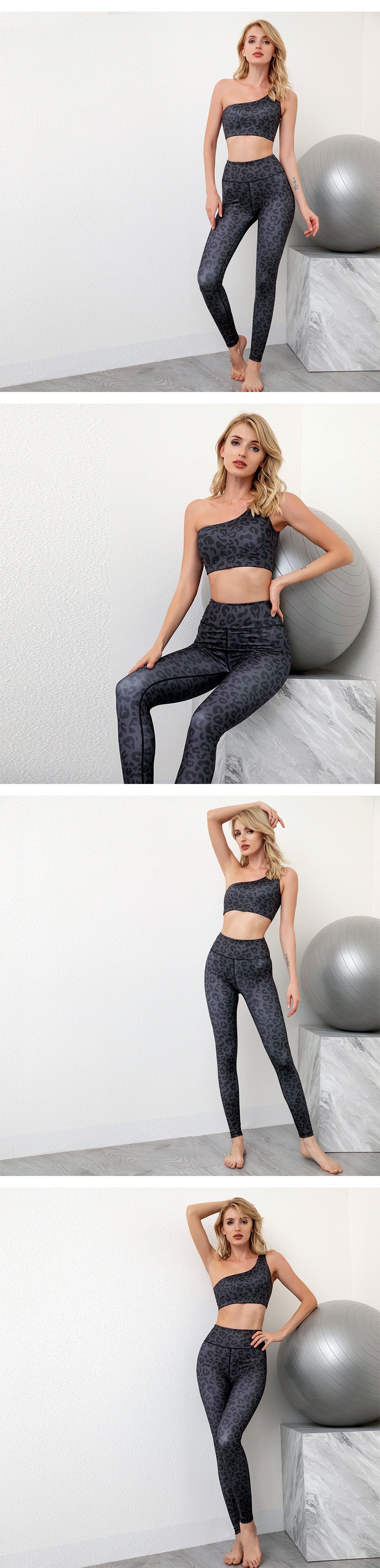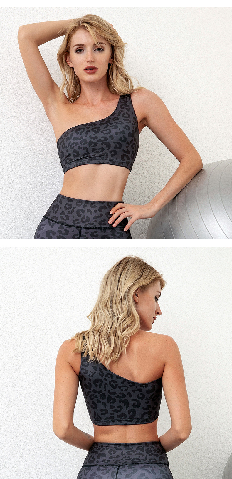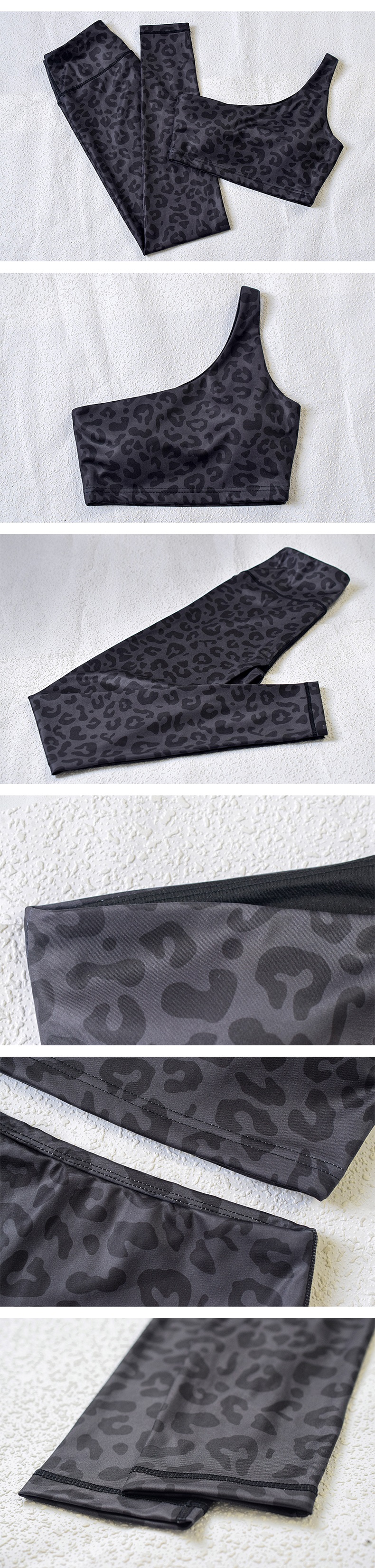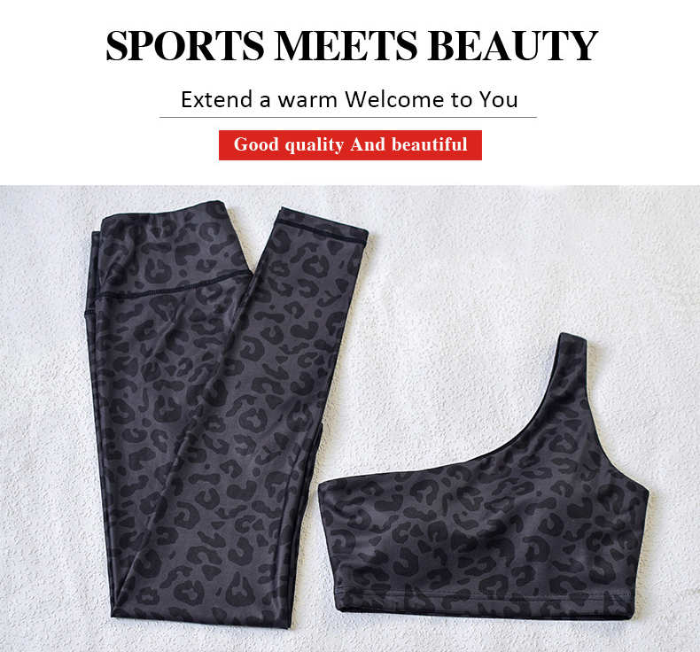 Virinoj unu ŝultro jogo supro mamzono sportoj surhavas leopardo presita gimnastikejo leggings aroj